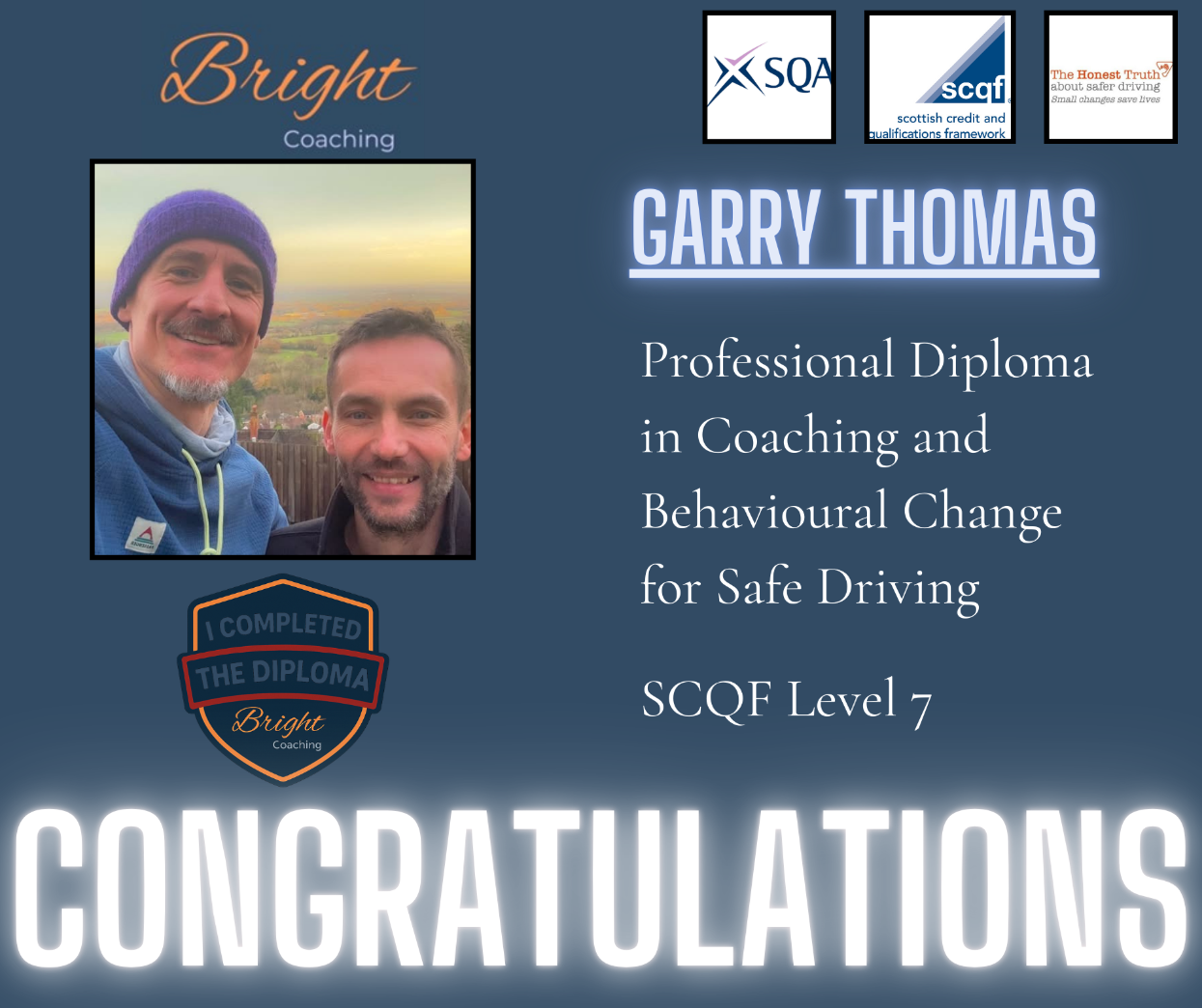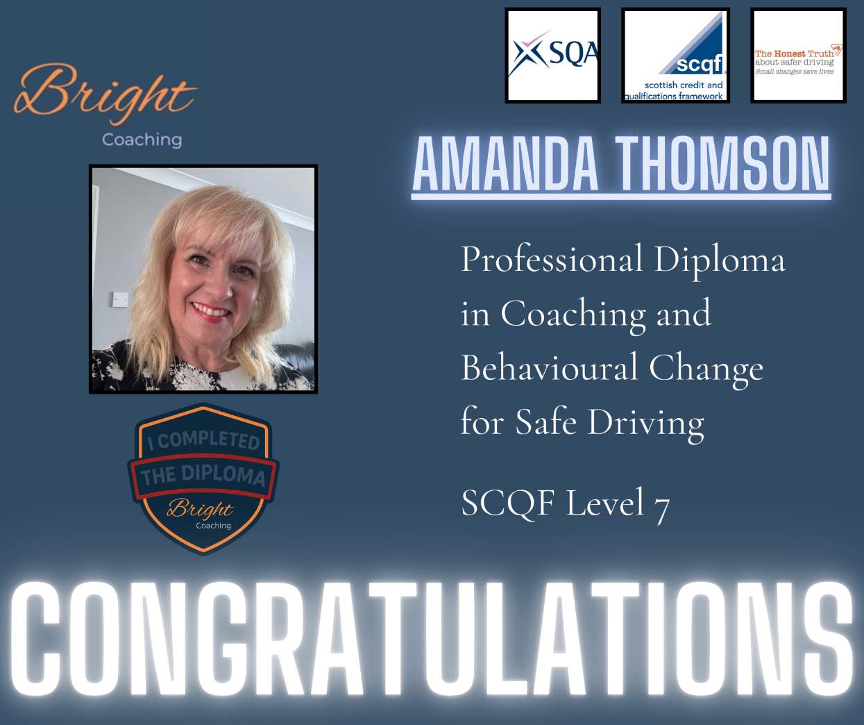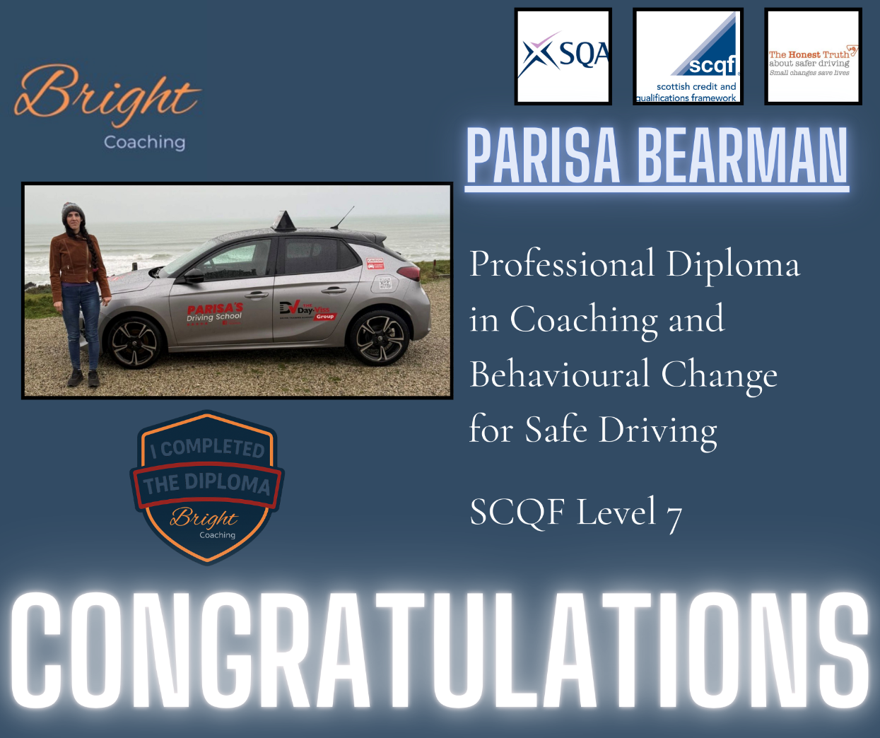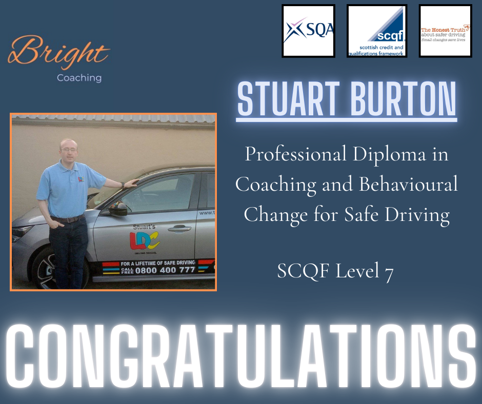 "WOW what a course! After qualifying as an ADI in 2023 I soon realised it was myself doing most of the talking in lessons and far too much 'telling' After looking into the Bright Coaching diploma and its content around coaching I knew I had found the missing link, the link that would bridge the gap to get my pupils way more involved and taking more responsibility for their own learning, delving deeper into pupils thoughts, feelings and beliefs, truly finding out route causes for their behaviours. It's been a real eye opener and I've found the content and each module fascinating. My lessons are so much more engaging, insightful and fun. The diploma has also helped so many other aspects of my life too. I'm not the finished article and I'm not sure you ever are. I'm a work in progress .... just like my learners. The diploma providers really do care how you're getting on, they offer support and practical advice and guidance every step of the way. If you're thinking of doing this diploma, don't hesitate, just go for it!"